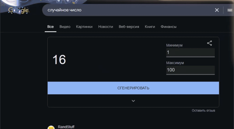 Подделка Google рандомайзера.